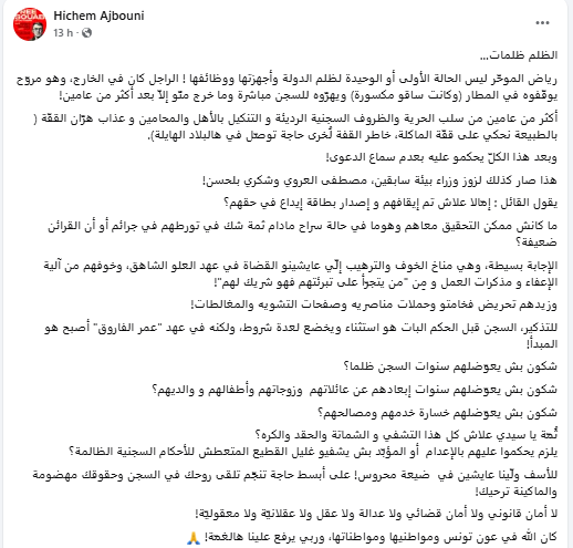 وتساءل العجبوني: ألم يكن من الممكن النحقيق مع المتهمين في حالة سراح ما دامت القرائن ضعيفة؟، من يعوّض سنوات السجن ظلما؟ .