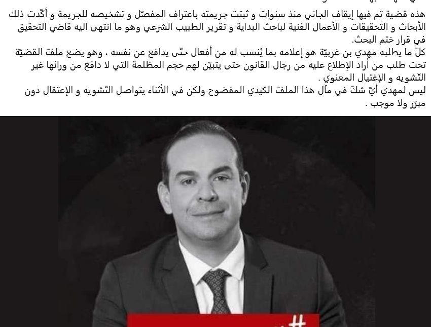 يذكر أن قاضي التحقيق بالمحكمة الابتدائية بتونس قد قرر في ماي الفارط إصدار بطاقة إيداع بالسجن في حق المهدي بن غربية في علاقة بملف جريمة قتل الفتاة رحمة لحمر بجهة عين زغوان سنة 2020.