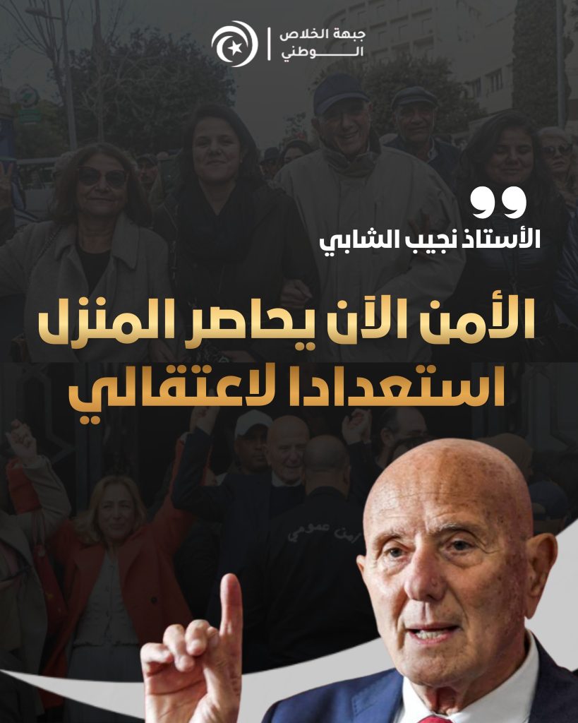 أكد رئيس جبهة الخلاص الوطني، أحمد نجيب الشابي، مساء اليوم الثلاثاء 02 ديسمبر 2025، محاصرة الأمن لمنزله استعدادا لاعتقاله.