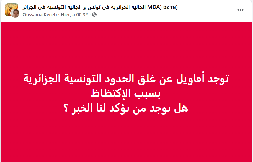 وبناء على هذه المعطيات، فقد تبين أن خبر غلق الحدود التونسية مع الجزائر خبرا مضللا.