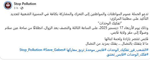 دعت حملة أوقفوا التلوث عموم المواطنات والمواطنين إلى التحرك والمشاركة بكثافة في المسيرة الشعبية لتجديد المطالبة بتفكيك الوحدات