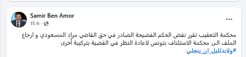 يشار إلى أن القاضي مراد المسعودي أحد القضاة الـ57 المعفيين، الذين أصدرت المحكمة الإدارية قرارا بإعادتهم إلى عملهم، لكن القرار لم يتم تنفيذه إلى حد الآن.