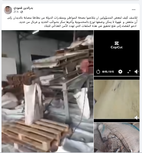 وأشار في تدوينة أرفقها بمقاطع فيديو إلى وجود بطاطا مصابة بالديدان وأرز متعفن وقهوة لا يمكن وصفها تُوزع بالمحسوبية.
