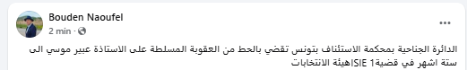 وكانت هيئة الدفاع عن موسي قد أعلنت في وقت سابق أنها استوفت العقوبة السجنية الصادرة في حقها في هذه القضية، لكن رغم ذلك قررت محكمة التعقيب بتاريخ 24 نوفمبر 2025 نقض الحكم المذكور و إرجاع القضية إلى محكمة الاستئناف للنظر فيها بتركيبة أخرى.