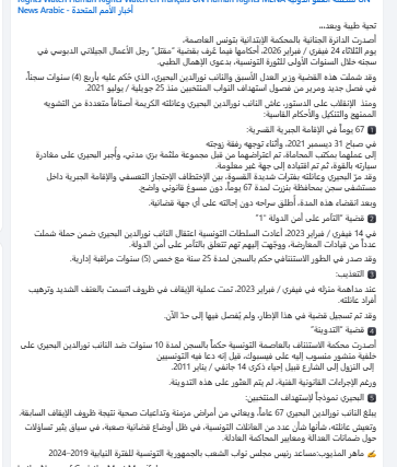 مذيوب: الحكمُ بأربعِ سنوات سجنا ضدّ البحيري يمثل فصلًا جديدًا من فصول استهداف النواب المنتخبين منذ 25 جويلية