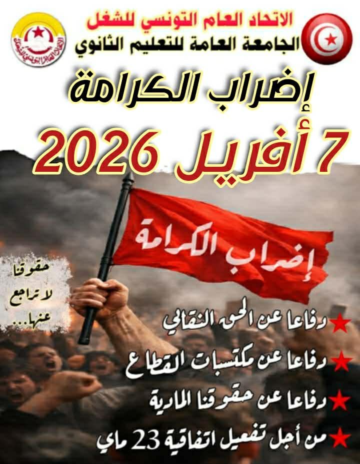كما تطالب باحتساب المفعول المالي والإداري للترقية المهنية بعنوان سنة 2024 ابتداء من شهر جويلية من نفس السنة طيب للاتفاقية المبرمة بين الجامعة العامة للتعليم الثانوي ووزارة الإشراف.